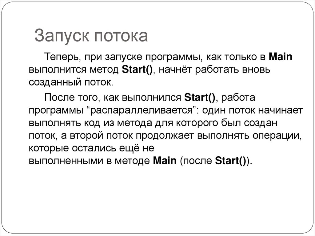 • Start запускает поток