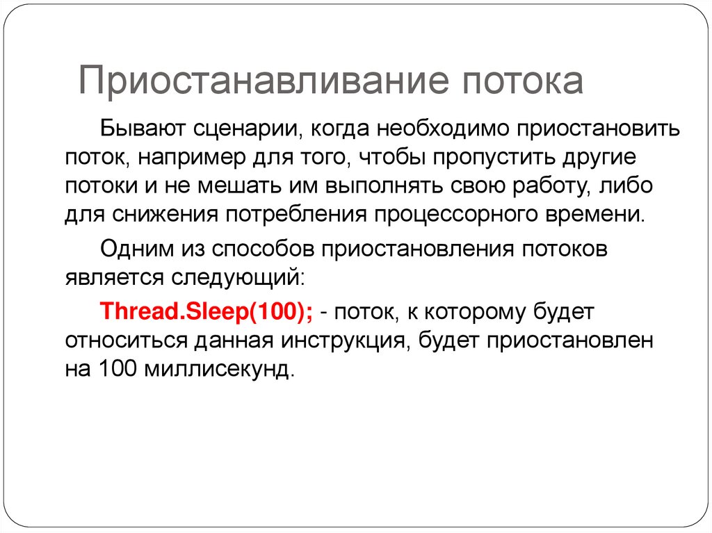 Приостанавливание потокаБывают сценарии, когда необходимо приостановить