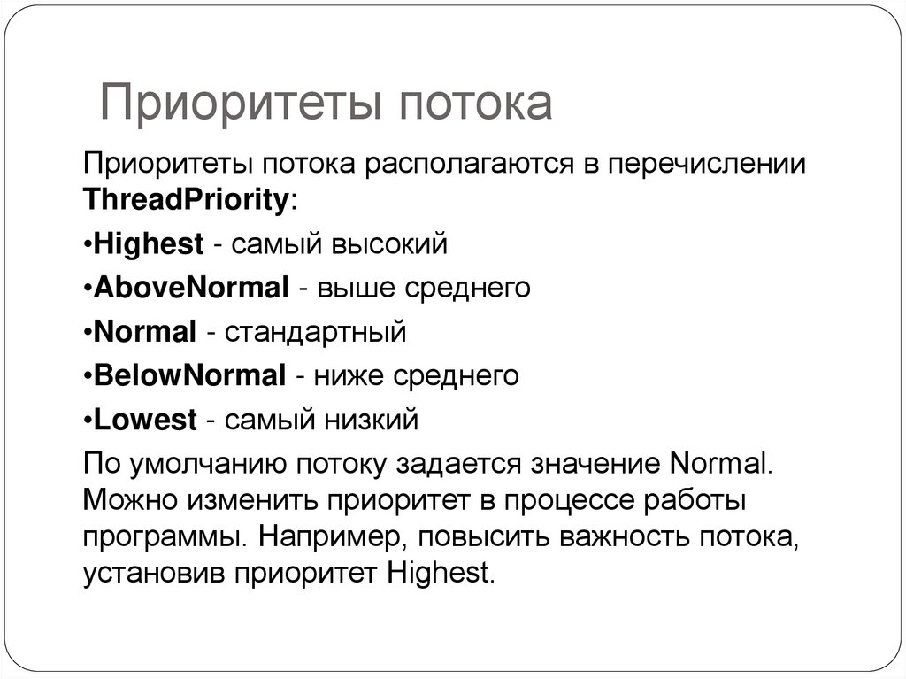 Приоритеты потокаПриоритеты потока располагаются в перечислении