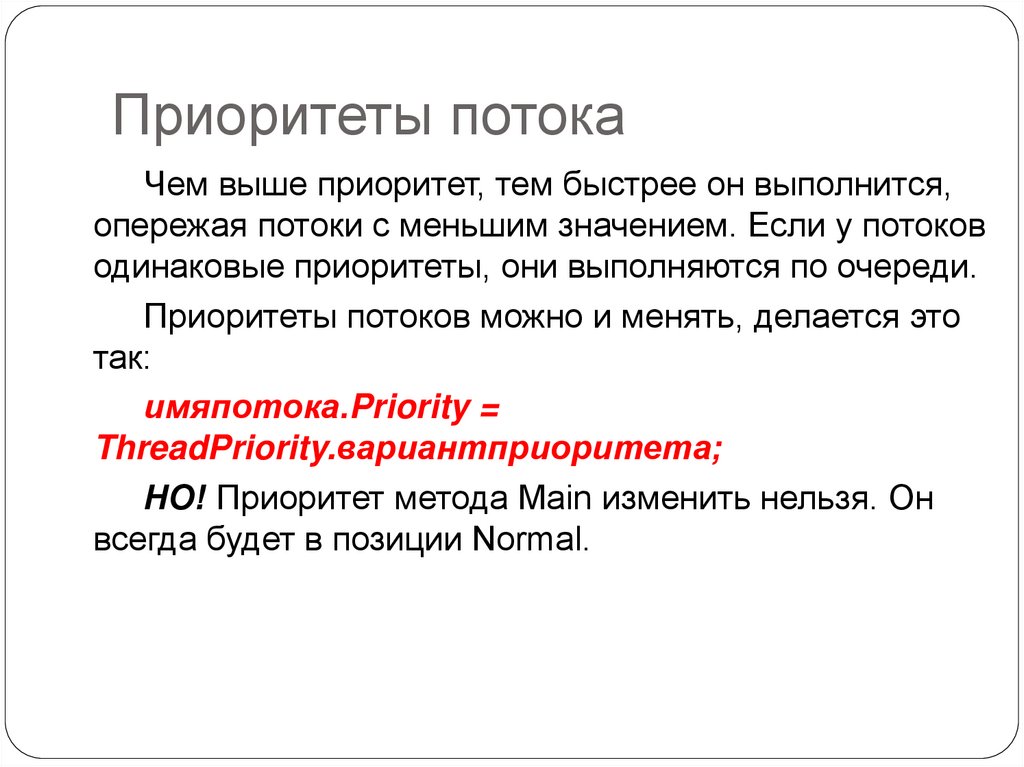 Приоритеты потокаЧем выше приоритет, тем быстрее он выполнится,