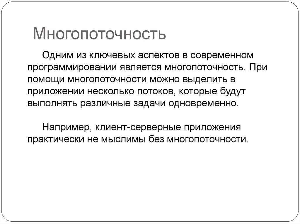 программировании является многопоточность. При