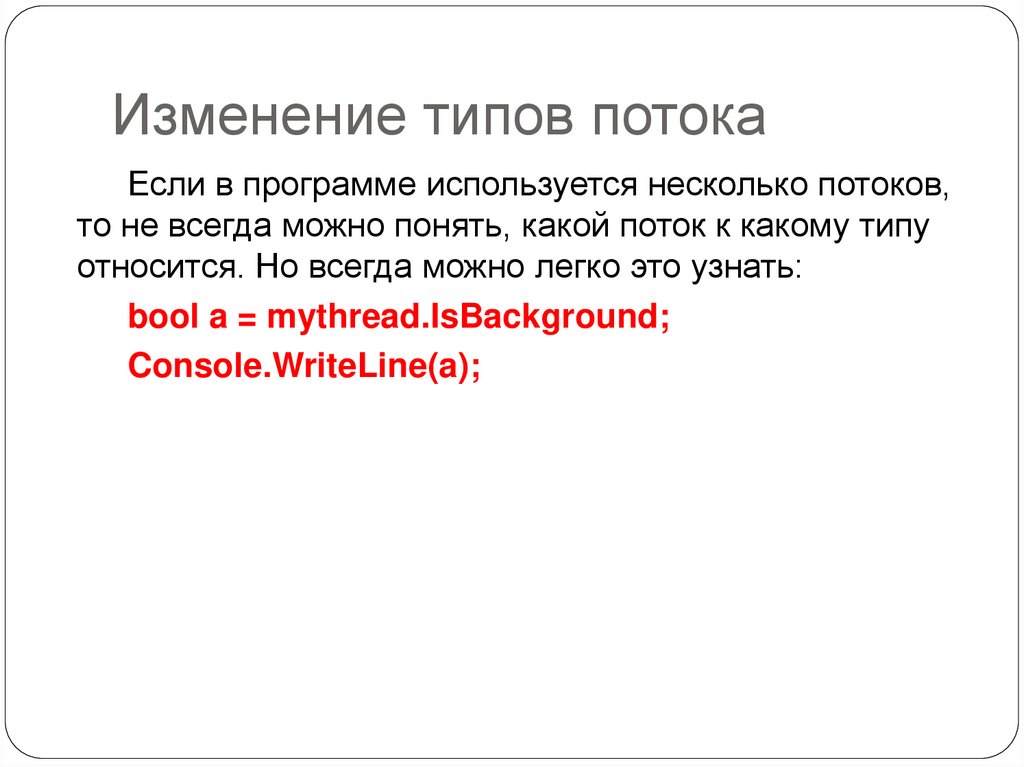 Изменение типов потокаЕсли в программе используется несколько потоков,