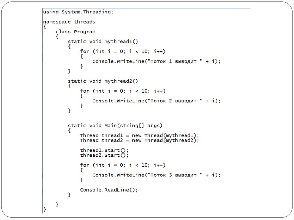 МногопоточностьЯзык C# имеет встроенную поддержку
