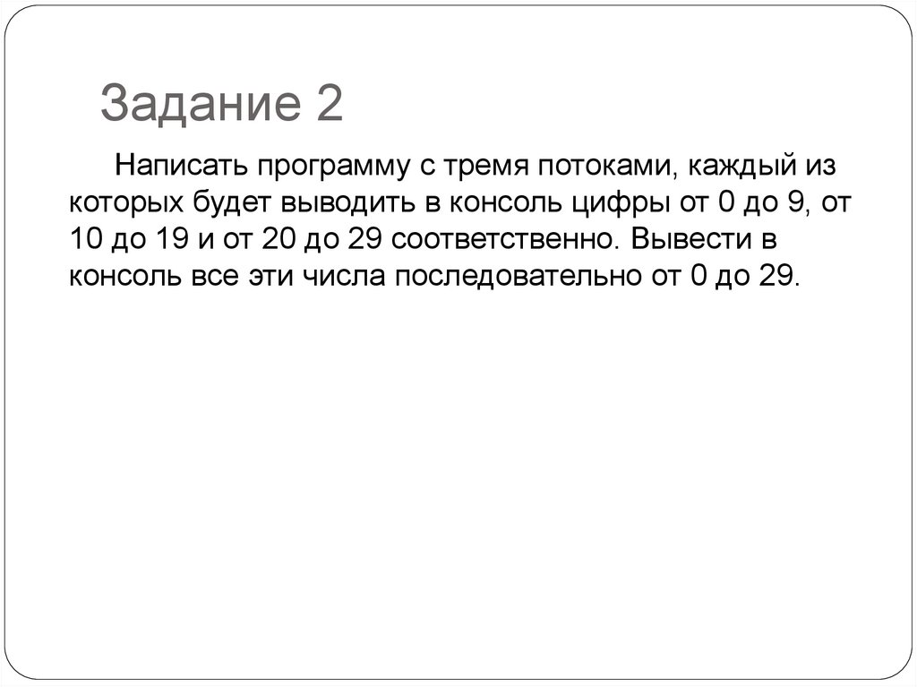 Задание 2Написать программу с тремя потоками, каждый из