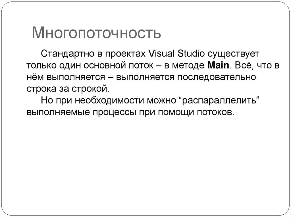 МногопоточностьСтандартно в проектах Visual Studio существует