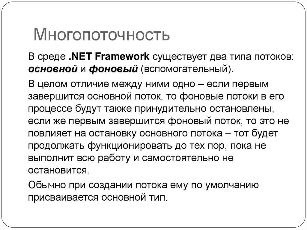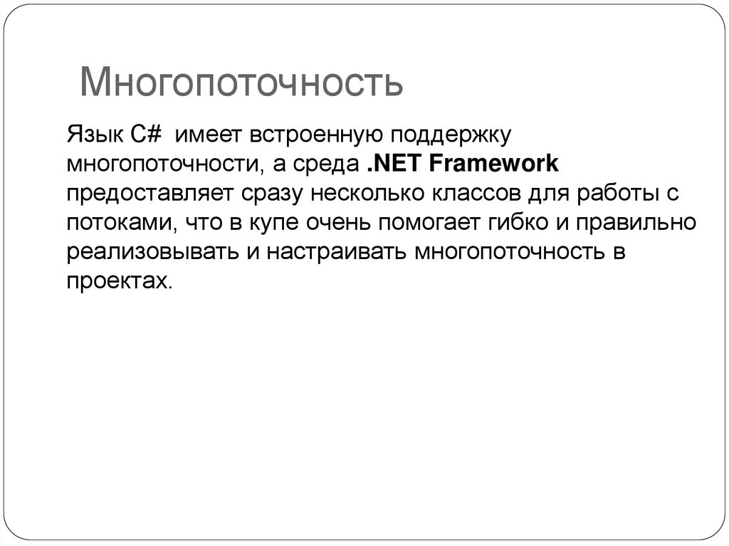 многопоточности, а среда .NET Framework