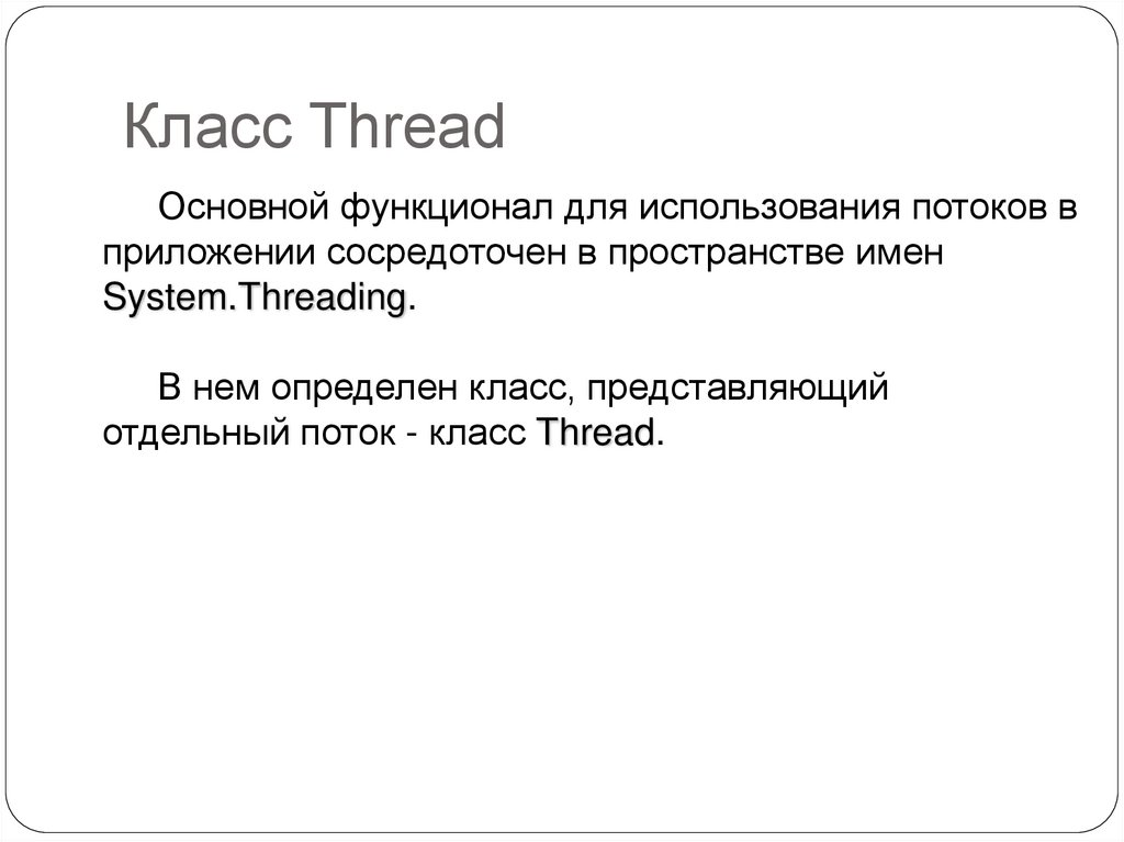 Класс ThreadОсновной функционал для использования потоков в