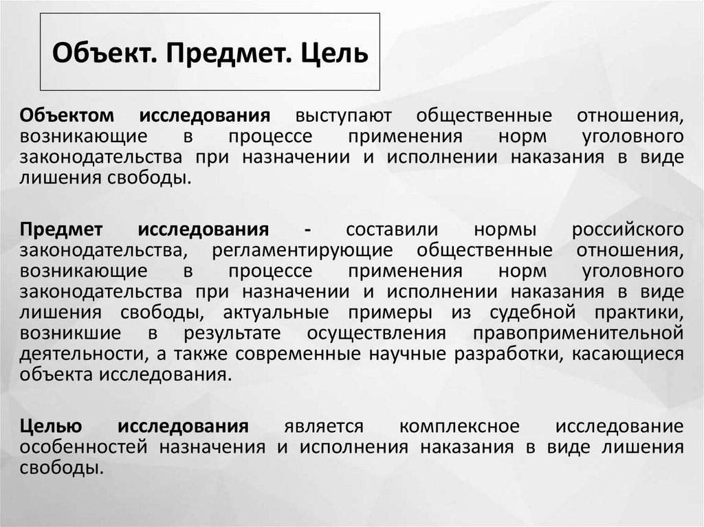 Объект. Предмет. Цель