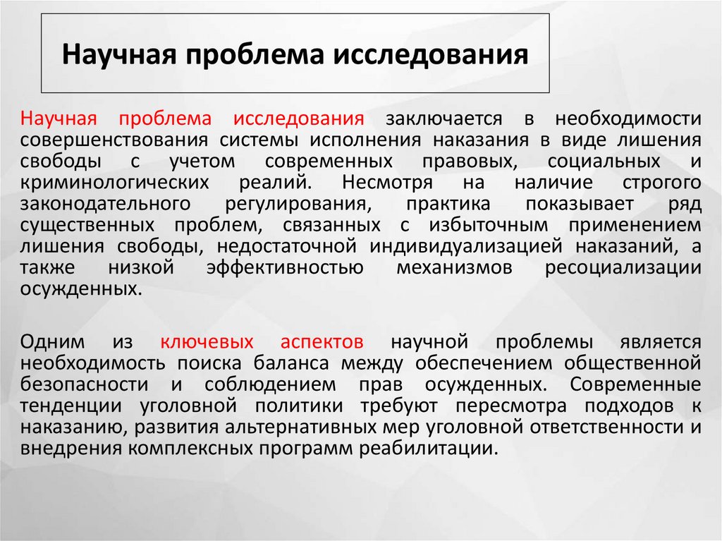 Научная проблема исследованияНаучная проблема исследования заключается в необходимости