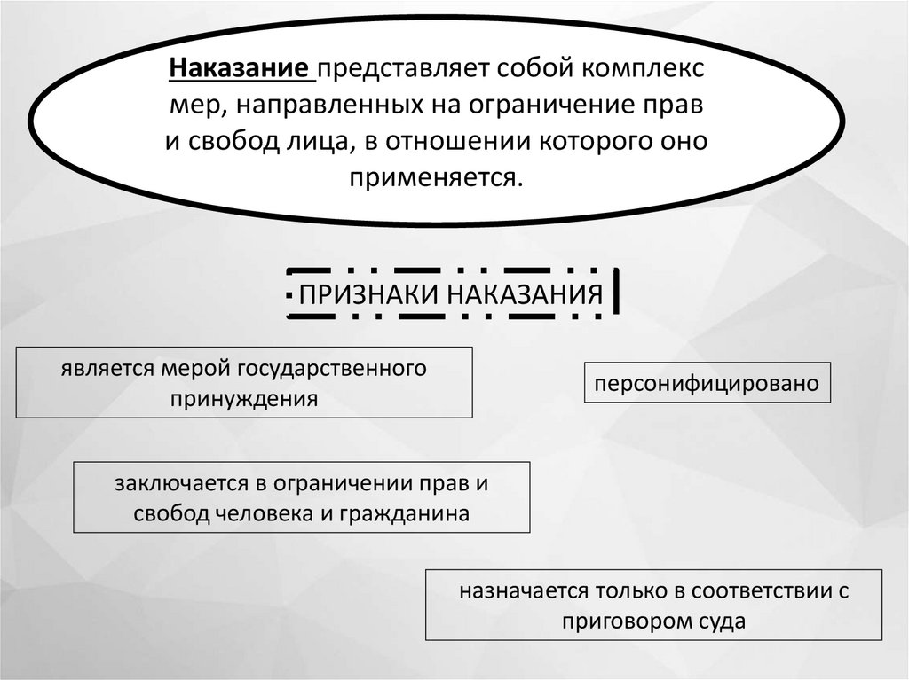 Наказание представляет собой комплексмер, направленных на ограничение прав