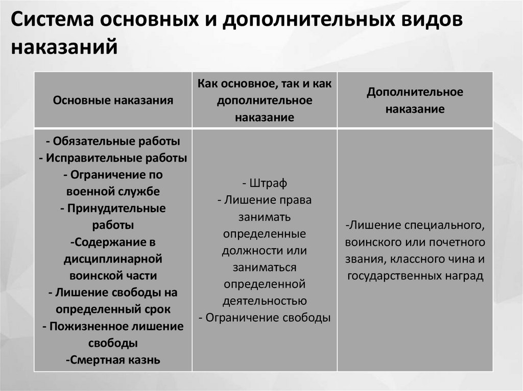 Система основных и дополнительных видовнаказаний