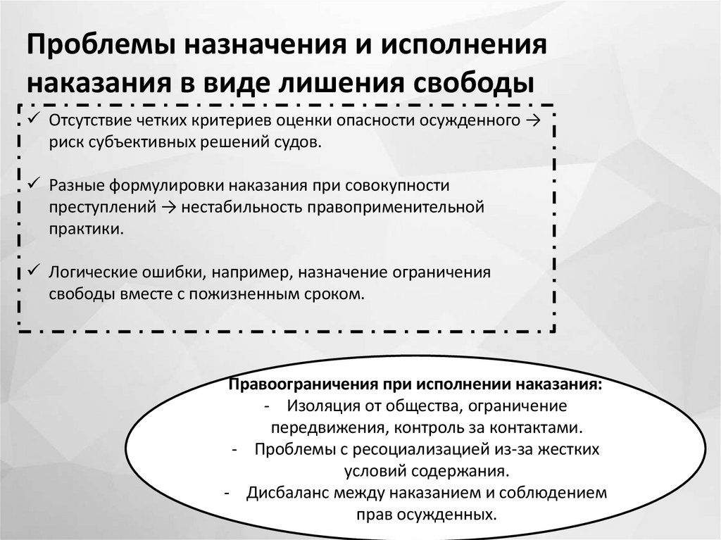 лишения свободы, недостаточной индивидуализацией наказаний, а