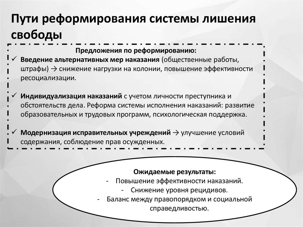 совершенствования системы исполнения наказания в виде лишения