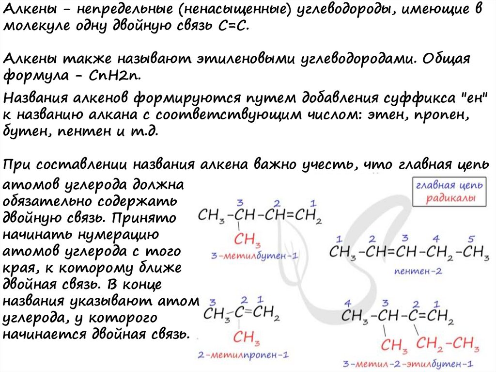 Алкены - непредельные (ненасыщенные) углеводороды, имеющие вмолекуле одну двойную связь С=С.