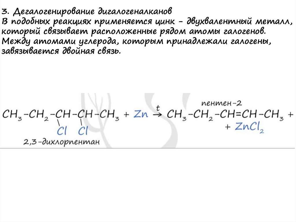 3. Дегалогенирование дигалогеналкановВ подобных реакциях применяется цинк - двухвалентный металл,