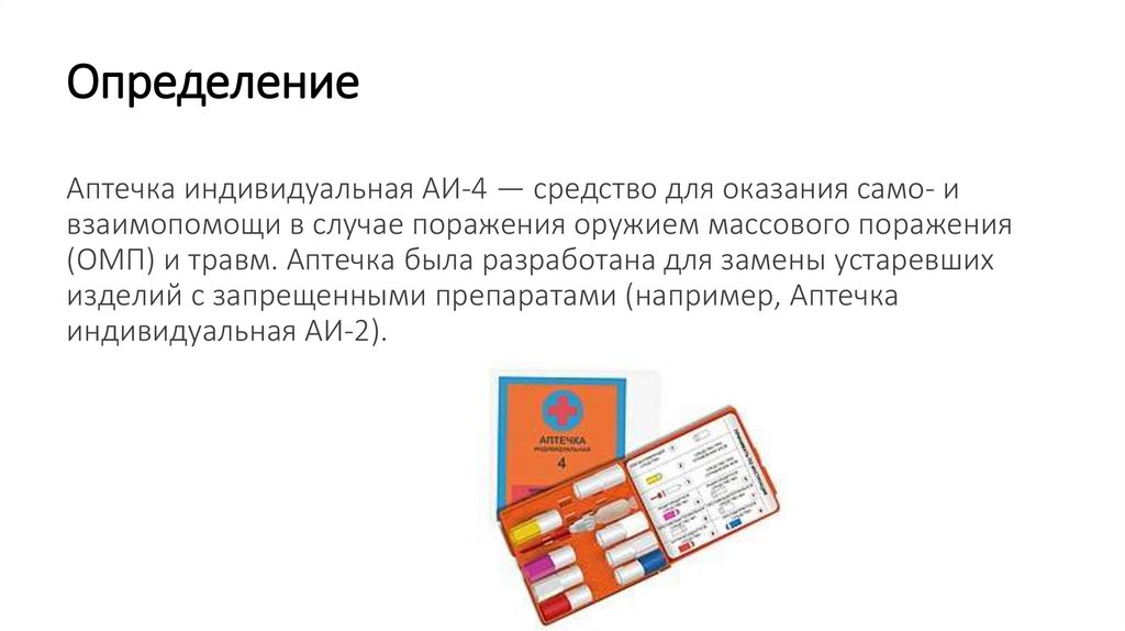 ОпределениеАптечка индивидуальная АИ-4 — средство для оказания само- и