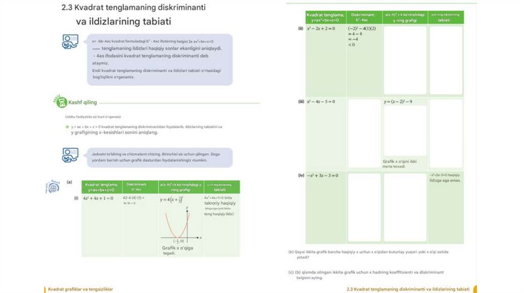 • y = ax2 +bx + c funksiyaning qiymati musbat