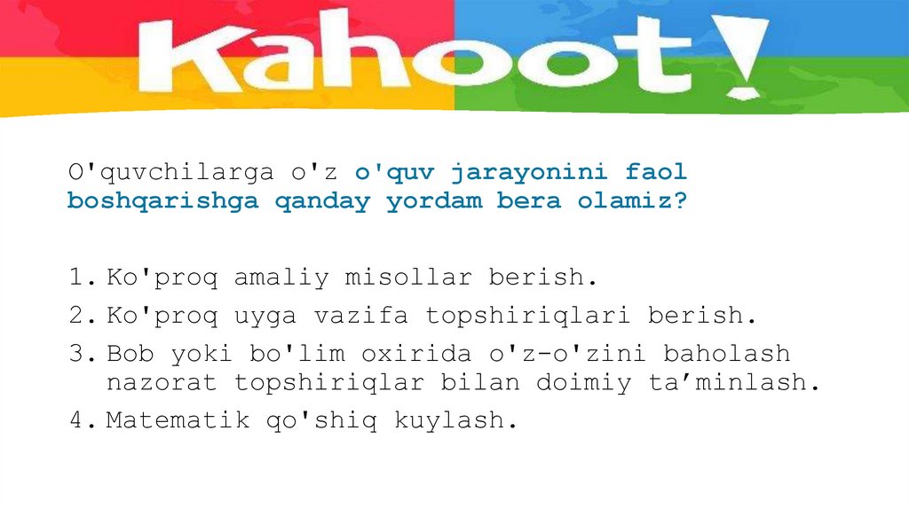 O'quvchilarga o'z o'quv jarayonini faolboshqarishga qanday yordam bera olamiz?
