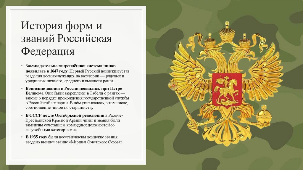 ВОЕННАЯ ФОРМА ИЗВАНИЯ РОССИЙСКОЙ