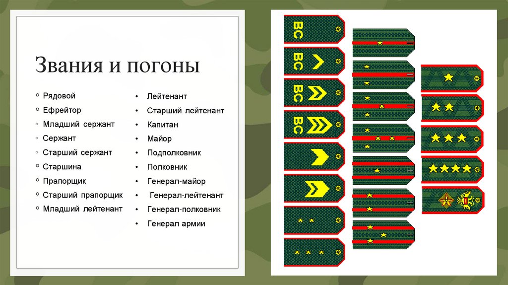 ◦ В СССР после Октябрьской революции в РабочеКрестьянской Красной Армии чины и звания были