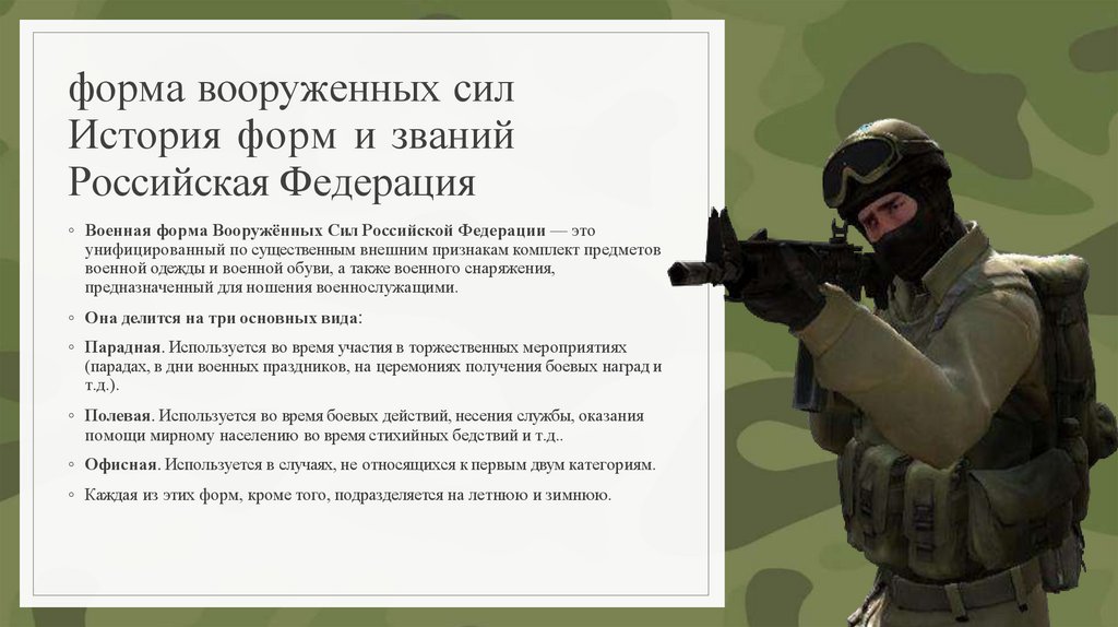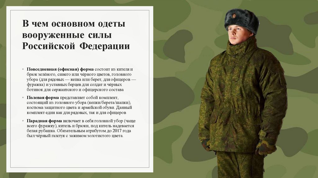◦ Военная форма Вооружённых Сил Российской Федерации — это