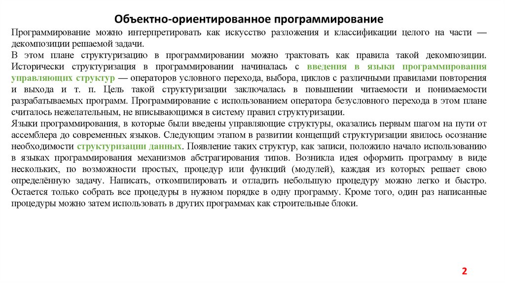 Исторически структуризация в программировании начиналась с введения в языки программирования