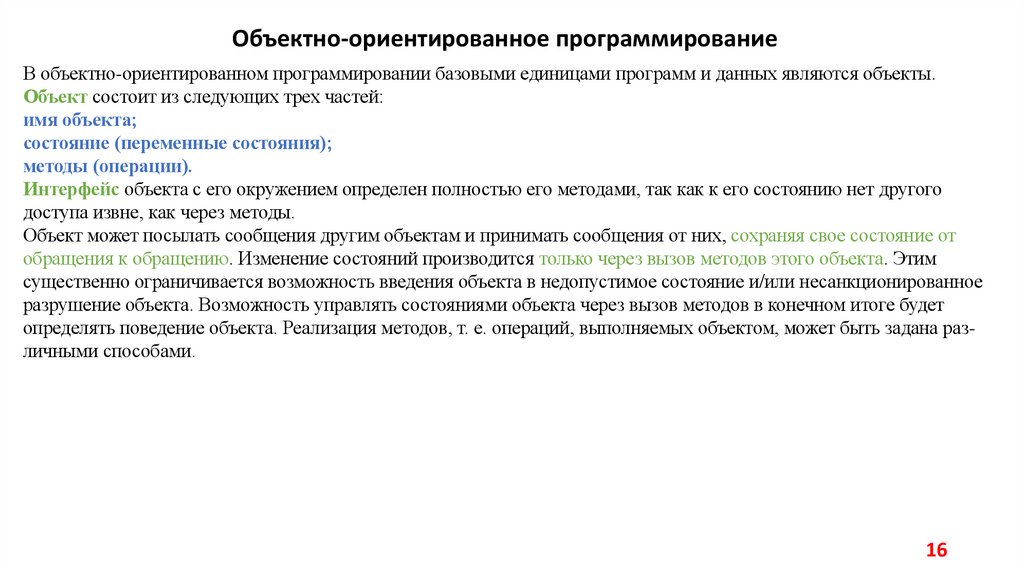 Объектно-ориентированное программированиеВ объектно-ориентированном программировании базовыми единицами программ и данных являются объекты.
