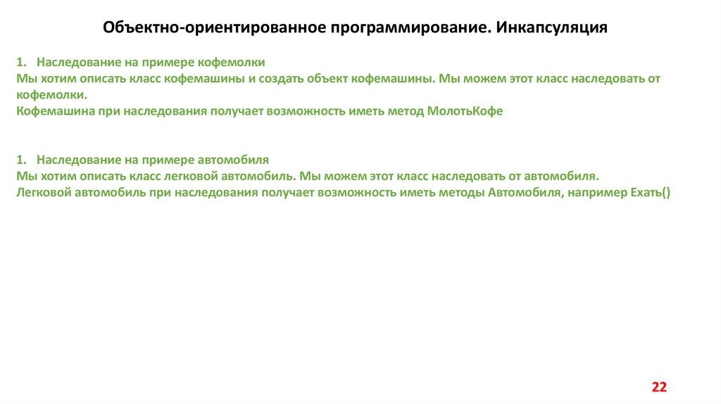 Объектно-ориентированное программирование. Инкапсуляция1. Наследование на примере кофемолки