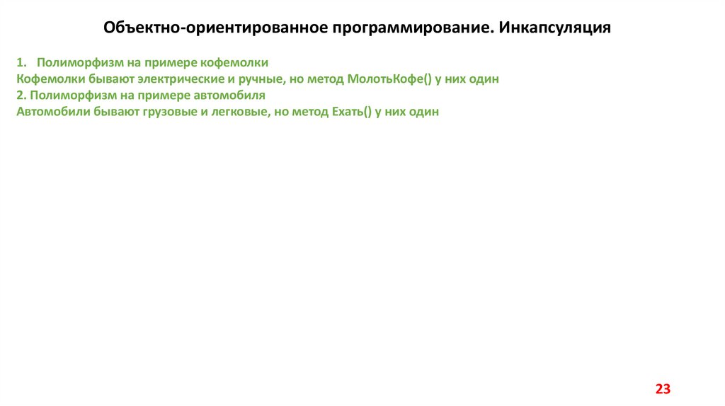 Объектно-ориентированное программирование. Инкапсуляция1. Полиморфизм на примере кофемолки