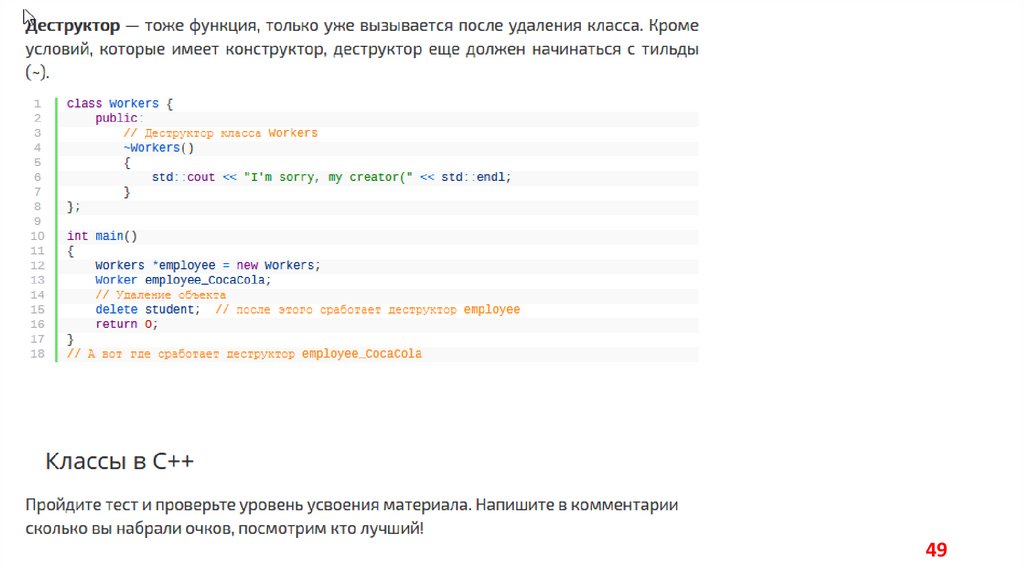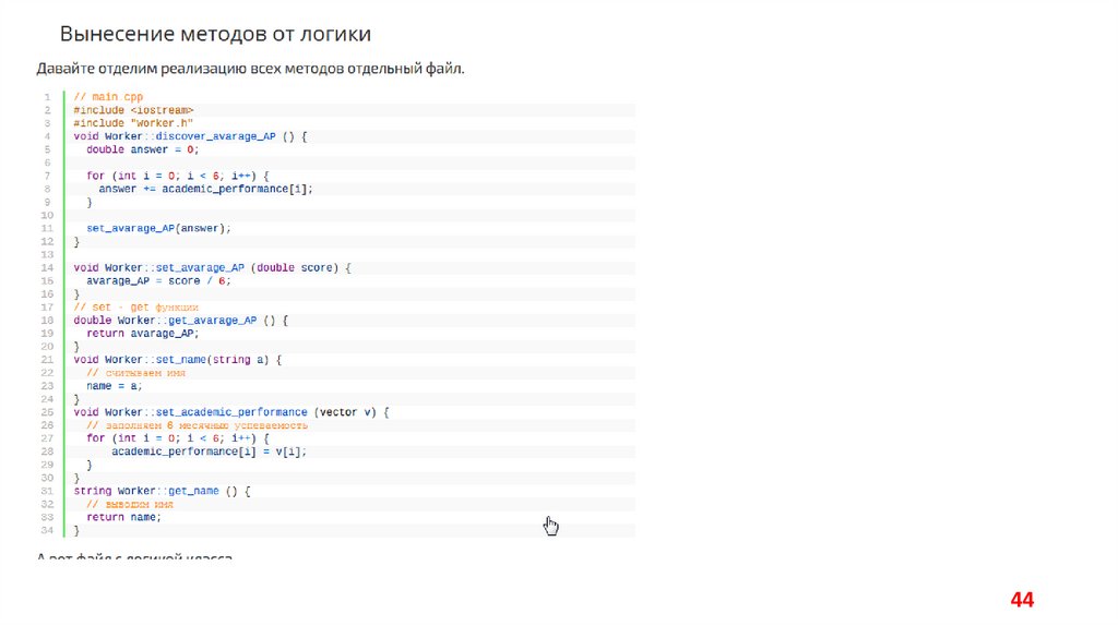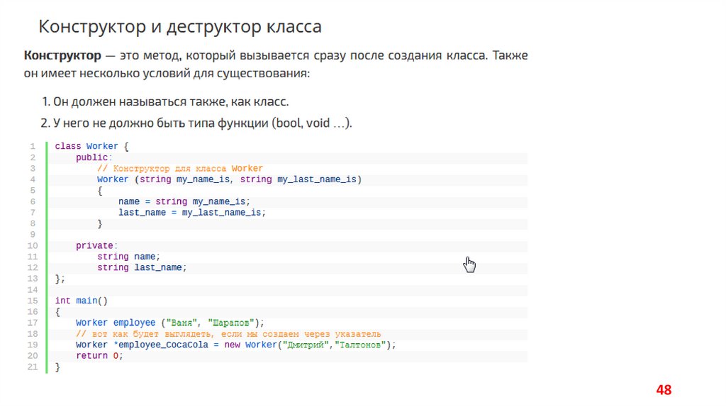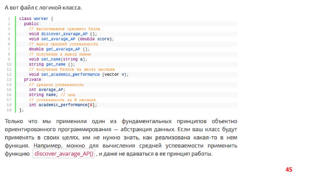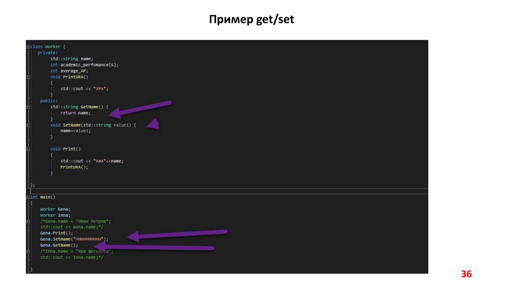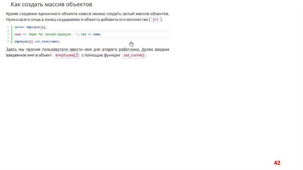 Методы классаЗдесь создан метод класса. В функции main мы обращаемся к нему.