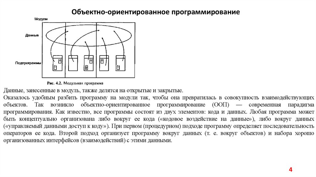 исходные данные и все процедуры их обработки в один модуль. Эта идея модульного программирования на некоторое