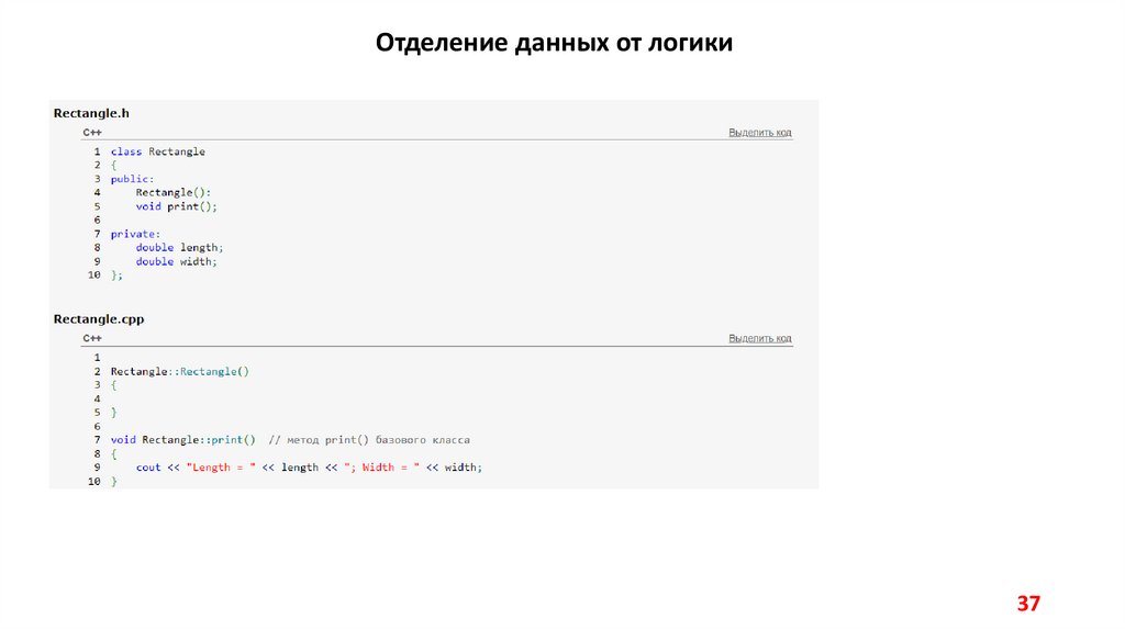 • ООП использует в качестве базовых элементов объекты, а не алгоритмы;