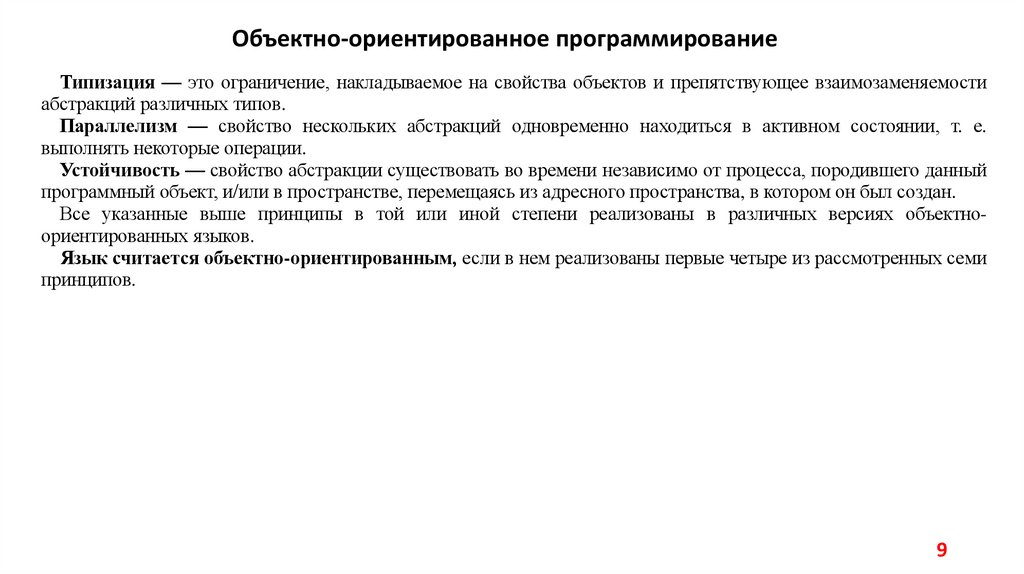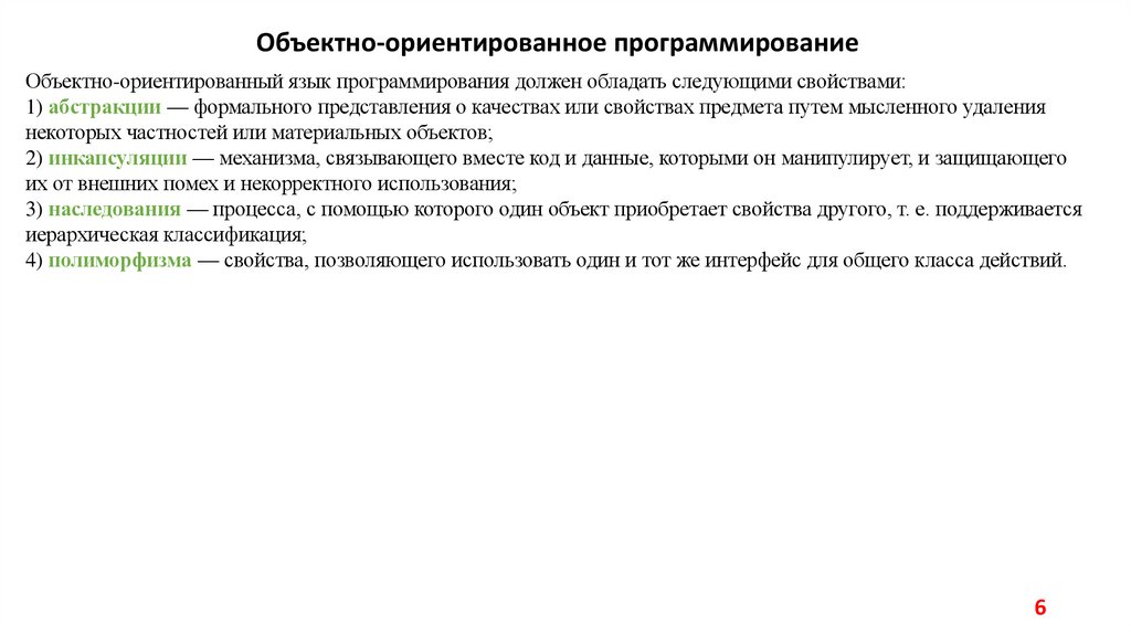 Объектно-ориентированное программированиеОбъектно-ориентированный язык программирования должен обладать следующими свойствами: