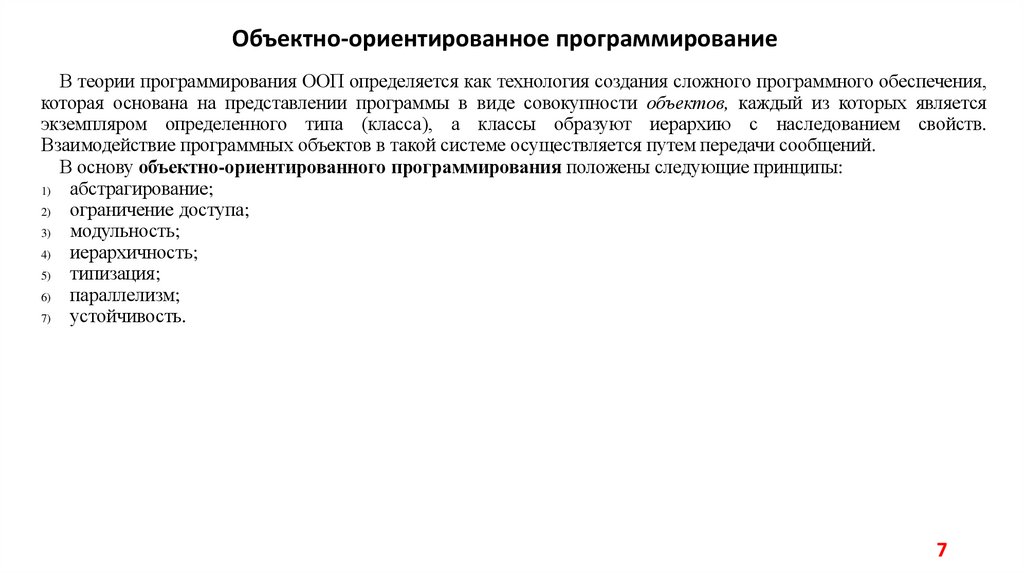 Объектно-ориентированное программированиеВ теории программирования ООП определяется как технология создания сложного программного обеспечения,