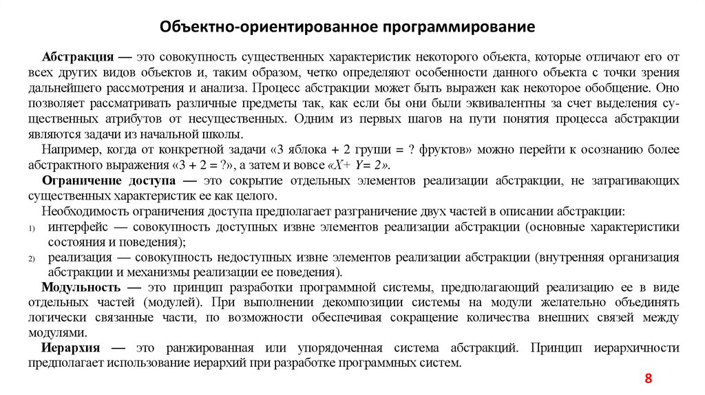 Объектно-ориентированное программированиеАбстракция — это совокупность существенных характеристик некоторого объекта, которые отличают его от
