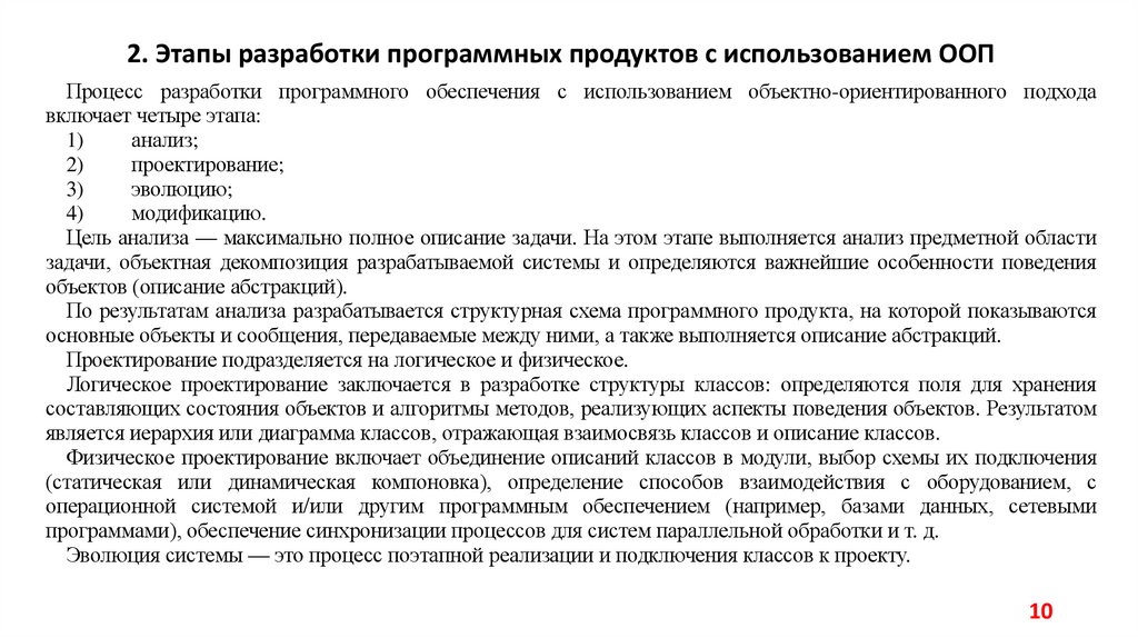 процесса написания программ. Программы в ООП представляют собой совокупность объектов и структур.