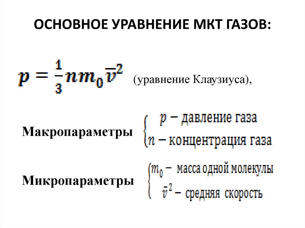 ОСНОВНОЕ УРАВНЕНИЕ МКТ ГАЗОВ:(уравнение Клаузиуса),