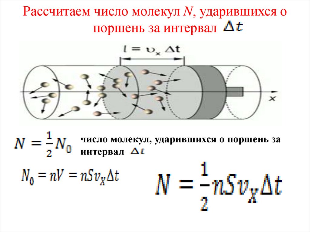 Рассчитаем число молекул N, ударившихся опоршень за интервал
