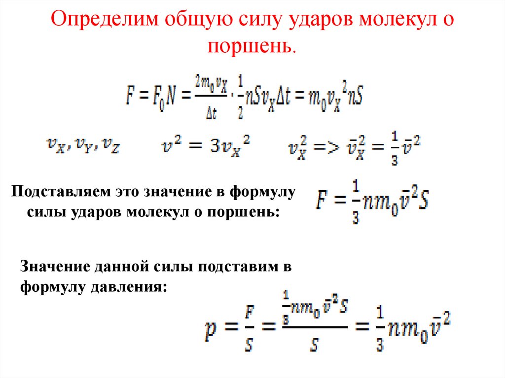Определим силу удара одной молекулы о стенку сосуда.Сила, действующая на