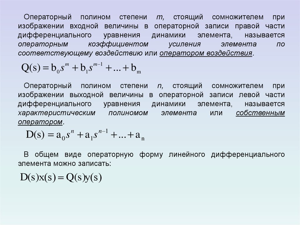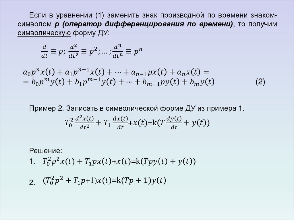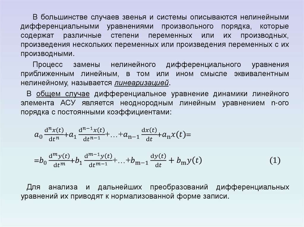 В большинстве случаев звенья и системы описываются нелинейнымидифференциальными уравнениями произвольного порядка, которые