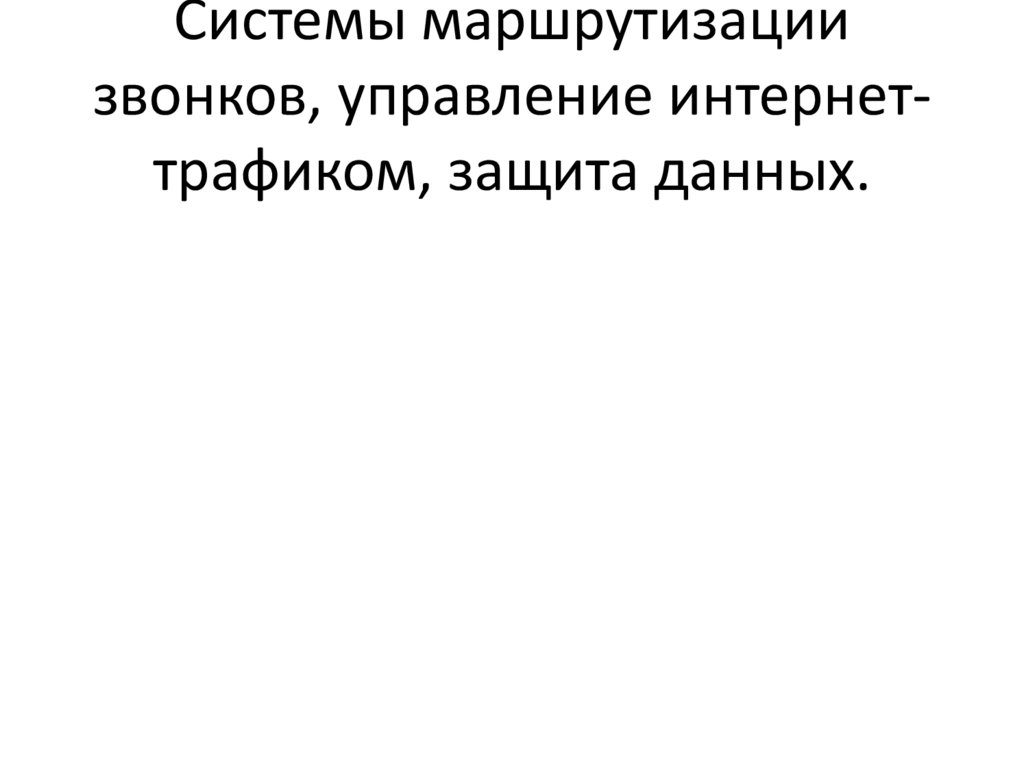 Системы маршрутизациизвонков, управление интернеттрафиком, защита данных.