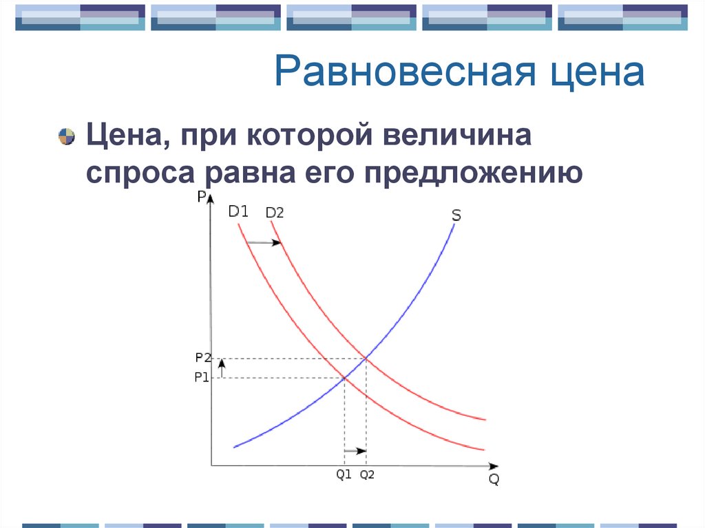 На рисунке отражена ситуация на рынке мобильных телефонов –линия спроса D переместилась в новое положение D1 (Р - цена