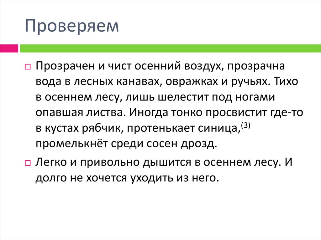 ПроверяемПрозрачен и чист осенний воздух, прозрачна