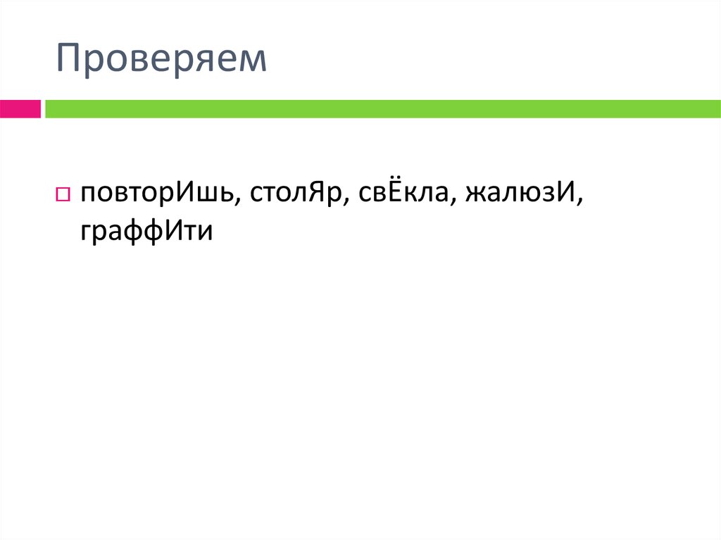 ПроверяемповторИшь, столЯр, свЁкла, жалюзИ,