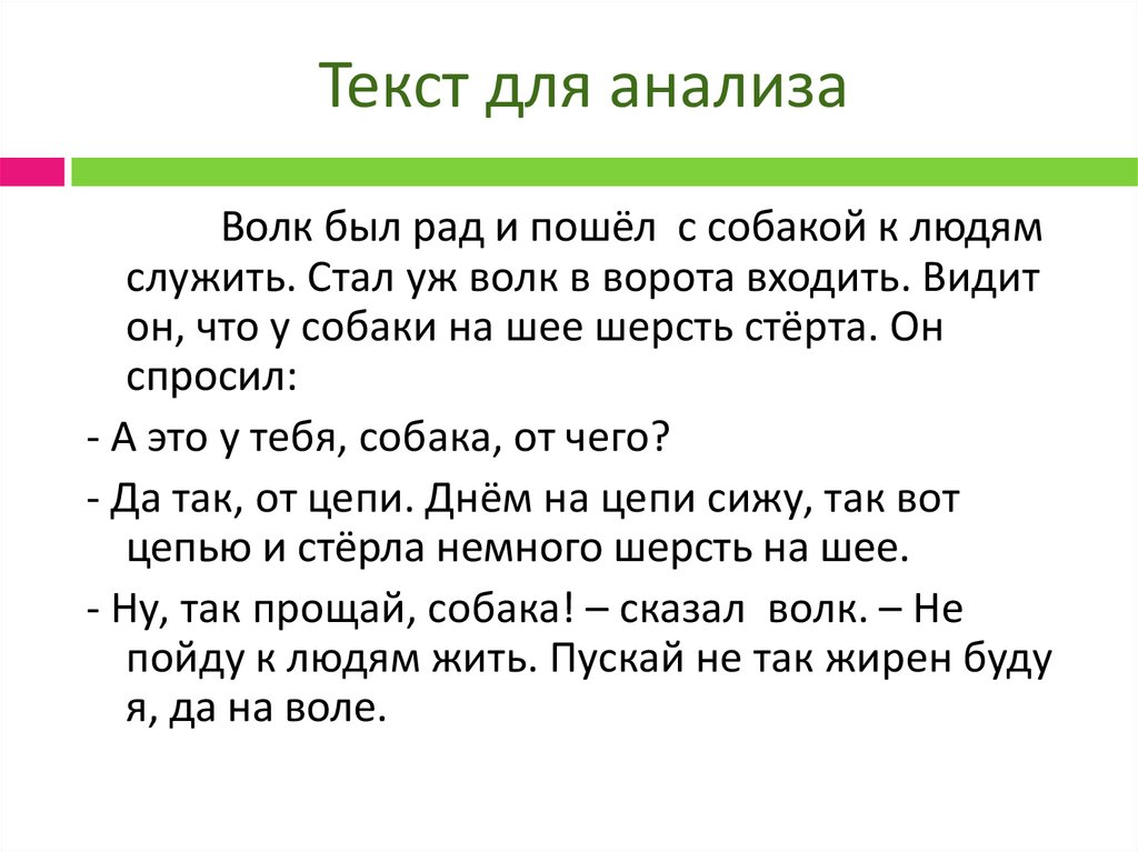 Текст для анализаВолк был рад и пошёл с собакой к людям