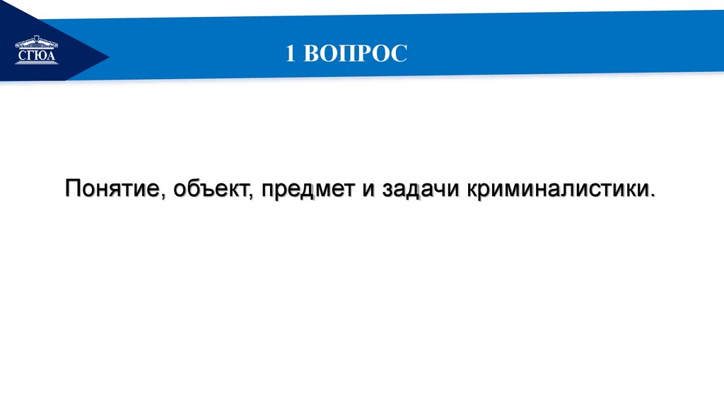 Понятие, предмет, объект, методы, задачи и система криминалистики