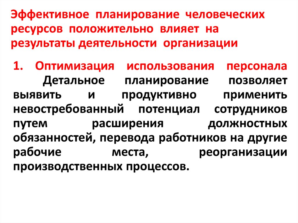 1. Оптимизация использования персоналаДетальное планирование позволяет