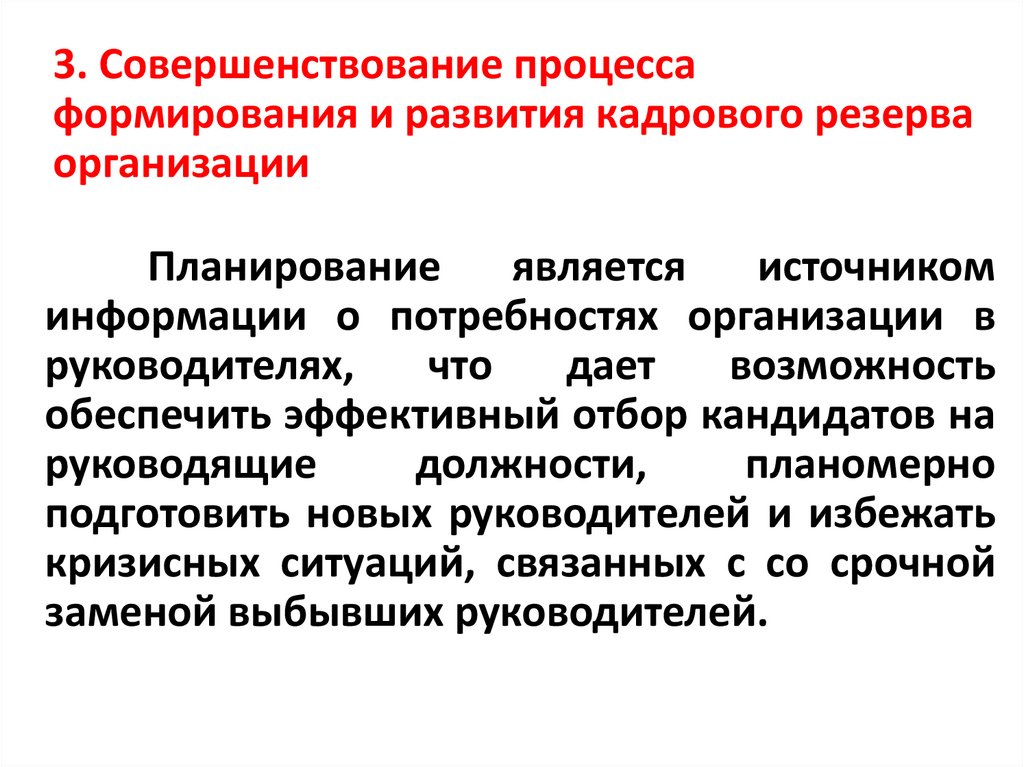 19. 3. Совершенствование процесса формирования и развития кадрового резерва организации