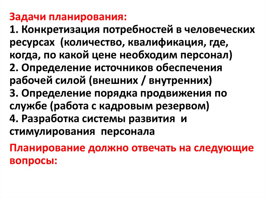 Задачи планирования:1. Конкретизация потребностей в человеческих