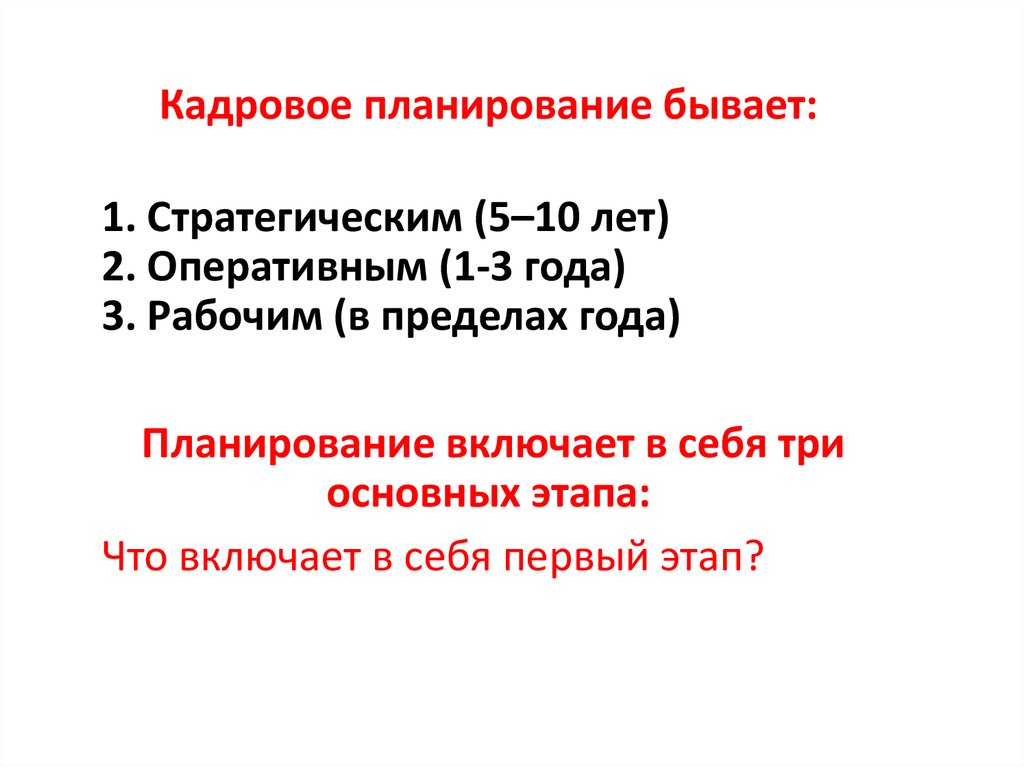 Кадровое планирование бывает:1. Стратегическим (5–10 лет)